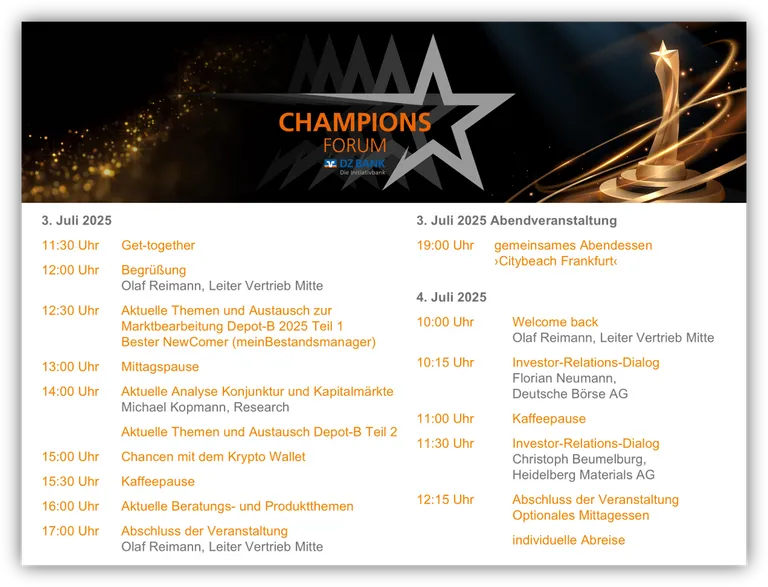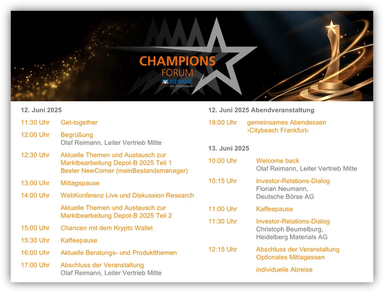Ihre Expertise, der Austausch mit Beratern anderer Genossenschaftsbanken und neue Impulse und Ideen - dafür steht das DZ BANK ChampionsForum.